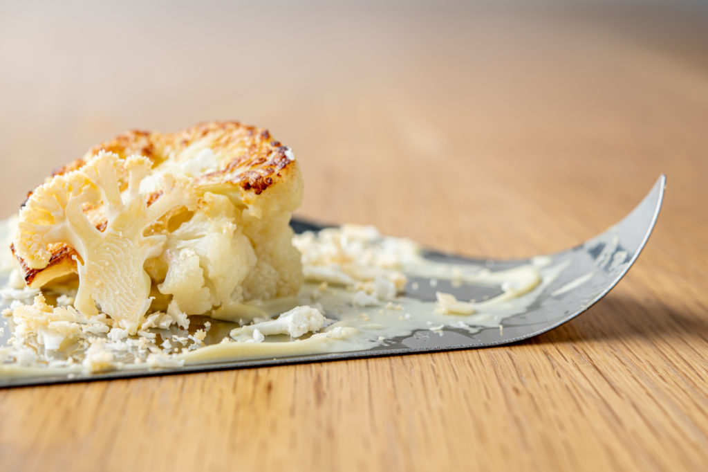 「例えばカリフラワーなら焼いたもの、揚げたもの、ソースに展開したものだけで構成するなど、一皿に多種類の素材を使わず、主素材のいろいろな表情を知って欲しい。そして子供からお年寄りまで、健康な人から療養中の人までも食べられるものを作りたい」と亀井さん。